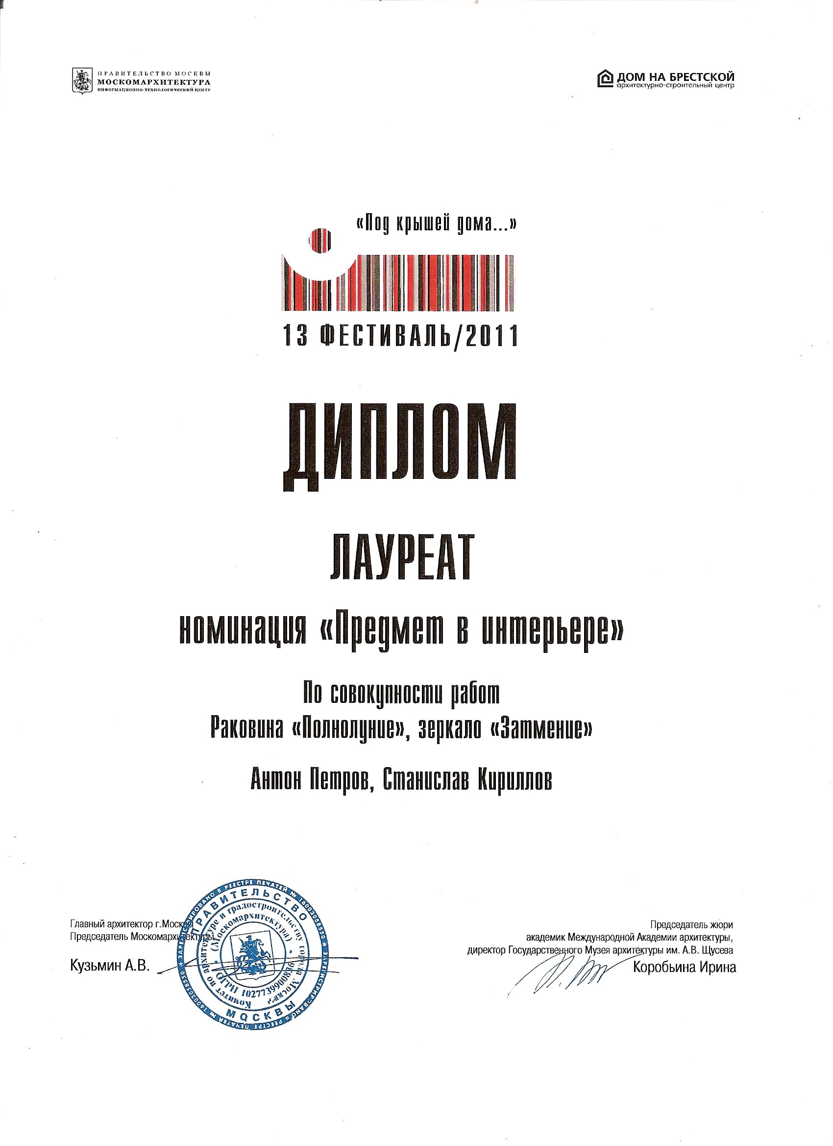 По совокупности работ Раковина «Полнолуние», зеркало «Затмение»